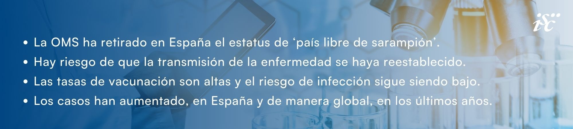 Como demuestran los estudios de seroprevalencia, la población española mantiene una elevada protección frente al sarampión, y el riesgo de infección sigue considerándose bajo. Esto no excluye que sea importante seguir reforzando medidas preventivas y de salud pública, encaminadas a detectar posibles brotes, consolidar la vacunación y fomentar el conocimiento social en torno a la enfermedad.