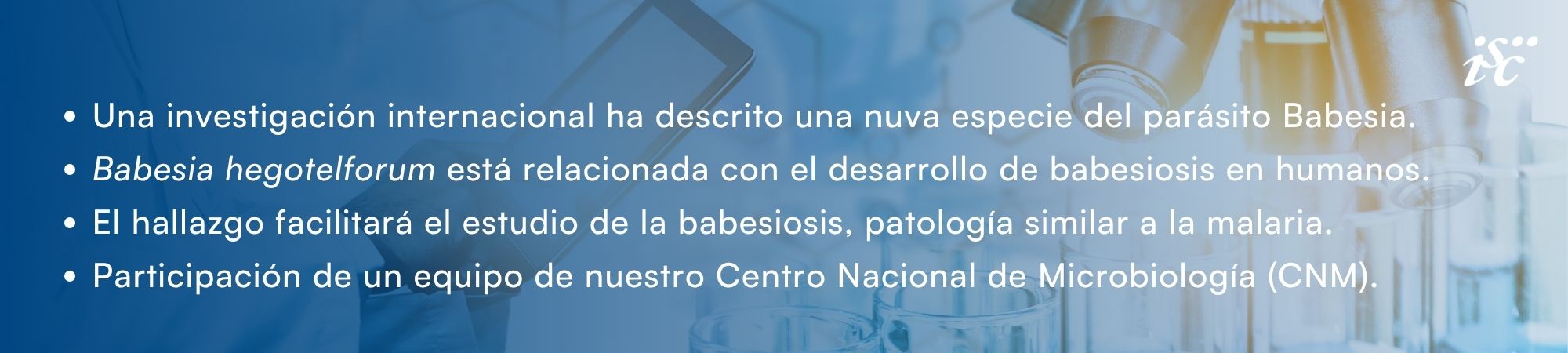 Un equipo del Instituto de Salud Carlos III (ISCIII) ha publicado dos estudios que permiten nuevos hallazgos microbiológicos en torno a la babesiosis, una infección zoonótica parasitaria similar a la malaria. El primero de los artículos confirma la existencia de una nueva especie de Babesia -el parásito que causa la patología- relacionado con la infección humana, y el segundo trabajo aporta nuevos análisis genómicos sobre la evolución y adaptación de la especie más común de este parásito.