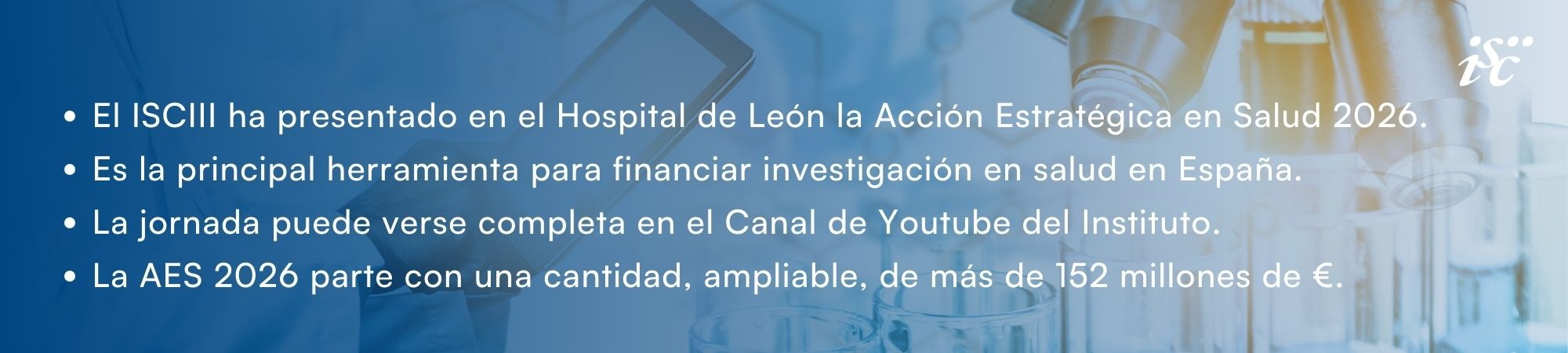 El Instituto de Salud Carlos III (ISCIII) ha presentado este jueves 22 de enero, desde el Hospital Universitario de León, la Acción Estratégica en Salud (AES) 2026, que como cada año concederá a la comunidad científica y sanitaria, mediante diferentes convocatorias de subvenciones, ayudas para proyectos de investigación en salud y contratos de personal.