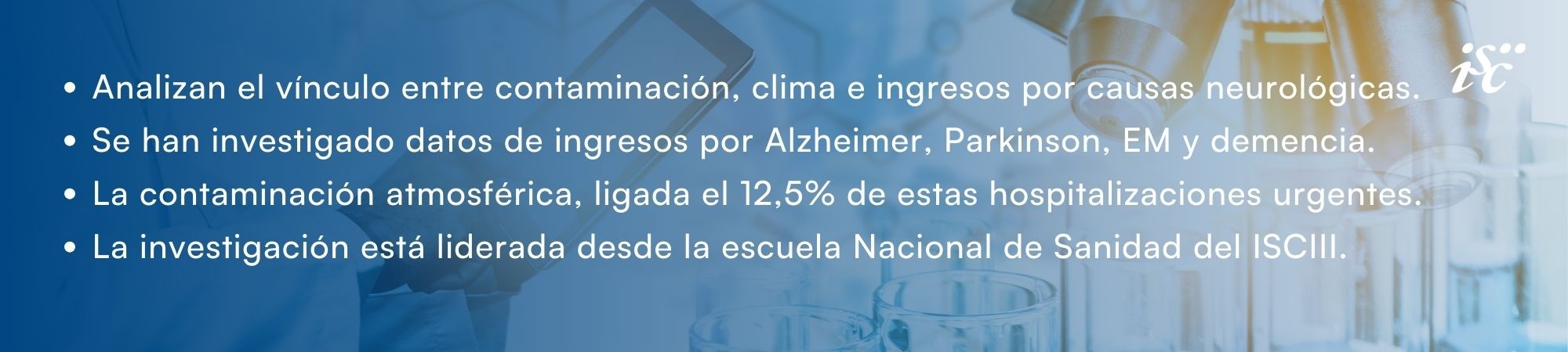 El vínculo entre las enfermedades neurológicas y variables ambientales, como la contaminación atmosférica y las olas de calor y frío, no se ha estudiado hasta ahora con profundidad. Por ello, el Departamento de Cambio Climático, Salud y Medio Ambiente Urbano de la Escuela Nacional de Sanidad del ISCIII ha llevado a cabo un estudio analizando más de 15.000 hospitalizaciones urgentes a nivel diario por demencia, Parkinson, Alzheimer y esclerosis múltiple, y su posible relación con los niveles de contaminación y las temperaturas extremas.