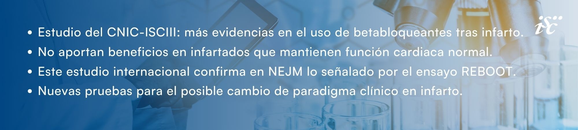 Un gran análisis liderado por el Centro Nacional de Investigaciones Cardiovasculares (CNIC), Fundación adscrita al Instituto de Salud Carlos III (ISCIII), realizada en colaboración con otras instituciones internacionales, ha reunido datos de 17.801 pacientes con infarto agudo de miocardio y función cardiaca normal incluidos en los 5 ensayos clínicos realizados en el mundo, y concluye que los fármacos betabloqueantes no aportan beneficios clínicos en este grupo de pacientes, que son la mayoría de los pacientes que superan un infarto hoy en día.